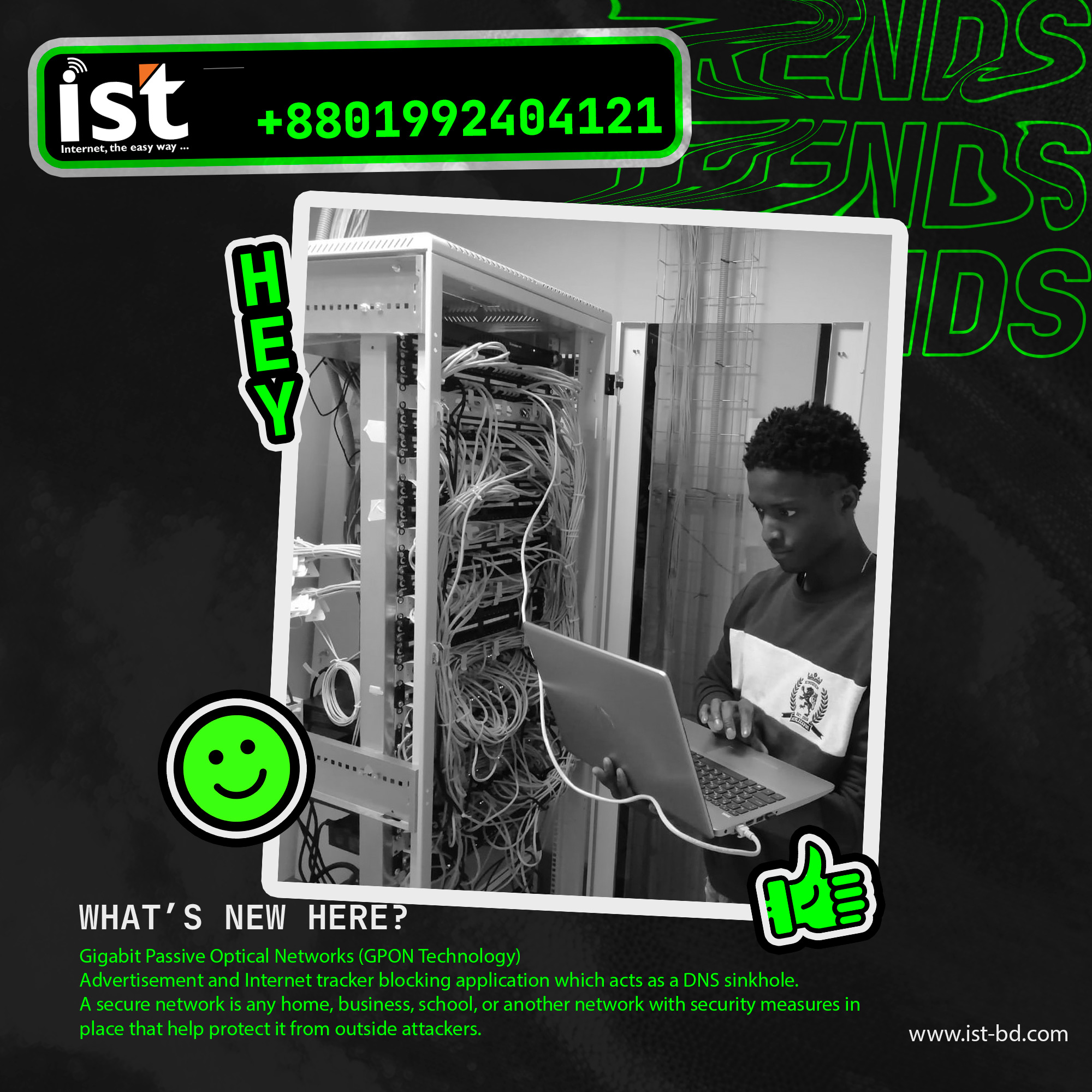IST commitment to quality internet service at an affordable price. At the time of commencement, IST started with broadband service with the state of the art technology. Over time, our R & D team has developed and introduced many new technologies to meet the requirements of the new millennium.